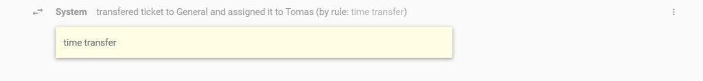 Ak sa pravidlo spustí, zmena sa zobrazí v podrobnom zobrazení tiketu. Tým sa zabezpečí jasná zodpovednosť za manipuláciu s tiketom. Zmeny môžu vidieť administrátori aj agenti.