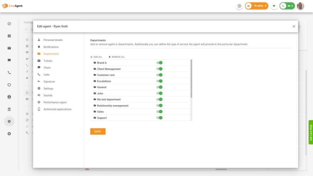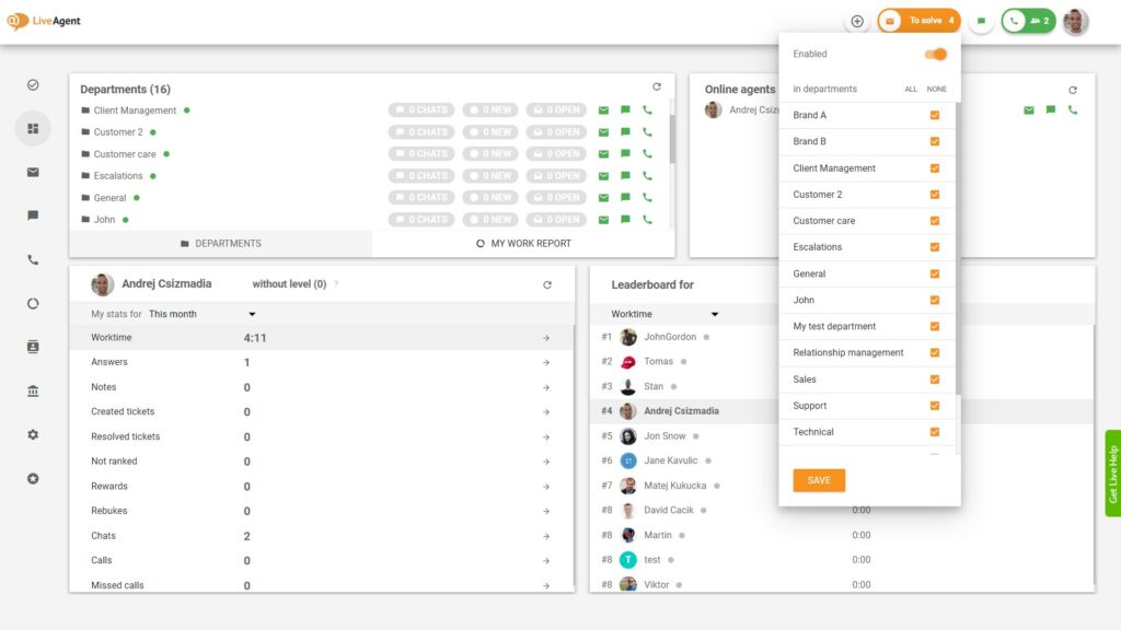 V softvéri LiveAgent si administrátori môžu vybrať či budú môcť agenti odpovedať na tikety prostredníctvom tlačidla “Na riešenie” alebo či budú môcť odpovedať na tikety zo sekcie “Všetky tikety”.