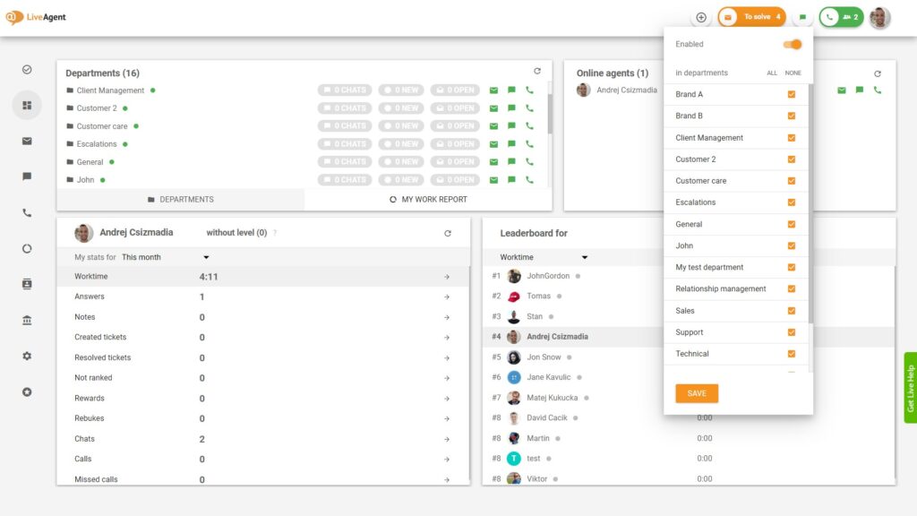 - Uprednostnite posledného agenta (tlačidlom „Na riešenie“ pridelia tikety agentom, ktorí na nich ako prví odpovedali)