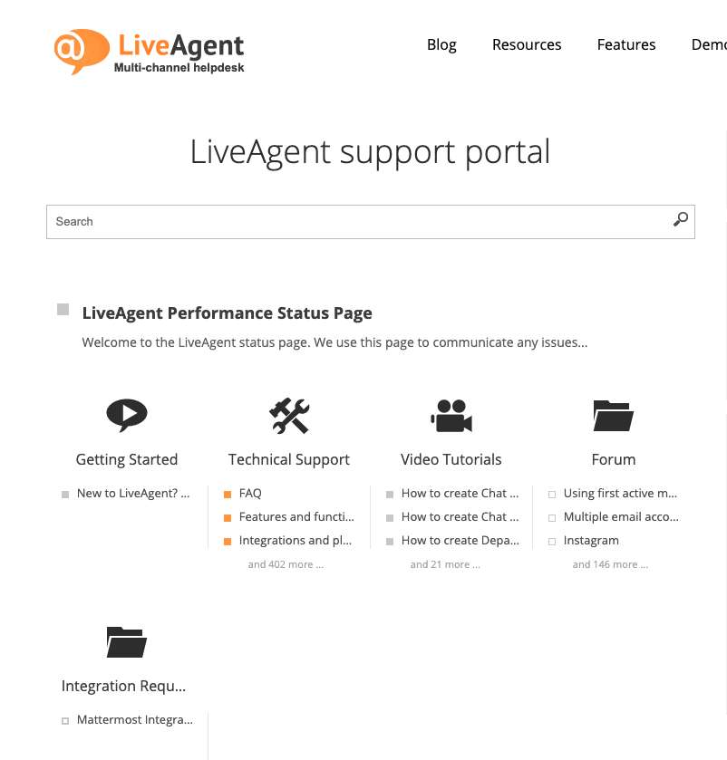 LiveAgent ponúka množstvo funkcií, ktoré pomáhajú firmám spojiť sa so zákazníkmi. Svojim klientom ponúka aj rozsiahlu knižnicu zdrojov. Tieto zdroje zahŕňajú blogové príspevky, šablóny, glosáre, testy písania, doplnok WordPress, adresáre, webináre, akadémiu a oveľa viac.