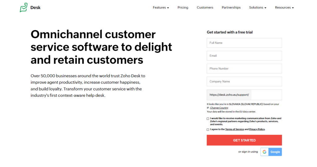 Zoho Desk podporuje tímy služieb zákazníkom a predajcov ako softvér pre zákaznícku skúsenosť. Ponúka tiež rezervačnú platformu, ktorá pomáha zákazníkom nastavovať stretnutia.